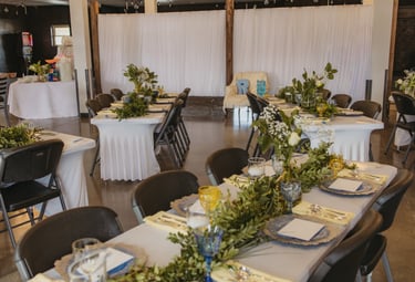 Tables & Chairs Included — Modern, matching tables and chairs ready for ceremonies, receptions, and custom layouts.